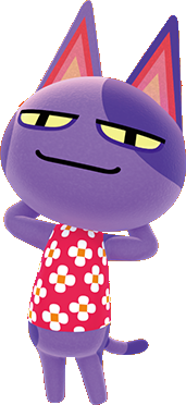 The inside of his ears are various shades of pink and his tail has two darker purple spots on it. His initial phrase pthhhpth may be a reference to the sound a cat makes when coughing up a hairball. Bob nikoban is a lazy cat villager.