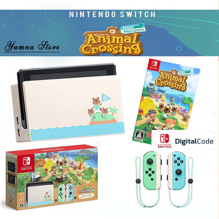 The nintendo switch animal crossing new horizons edition system takes design inspiration from the new animal crossing. New horizons game with lovely pastel green and blue joy con controllers and a white nintendo switch dock adorned with images of recognizable characters tom nook and nooklings timmy and tommy. New horizons game with lovely pastel green and blue joy con controllers and a white nintendo switch dock adorned with images of recognizable characters tom nook and nooklings timmy and tommy.